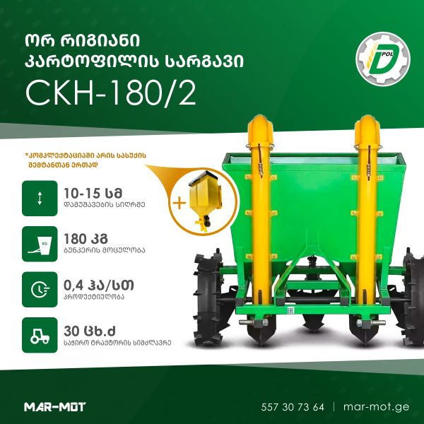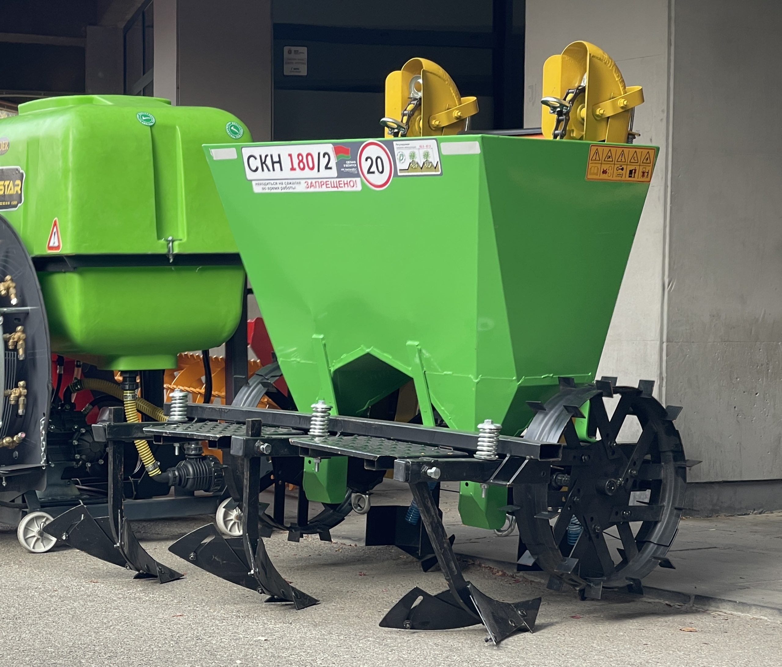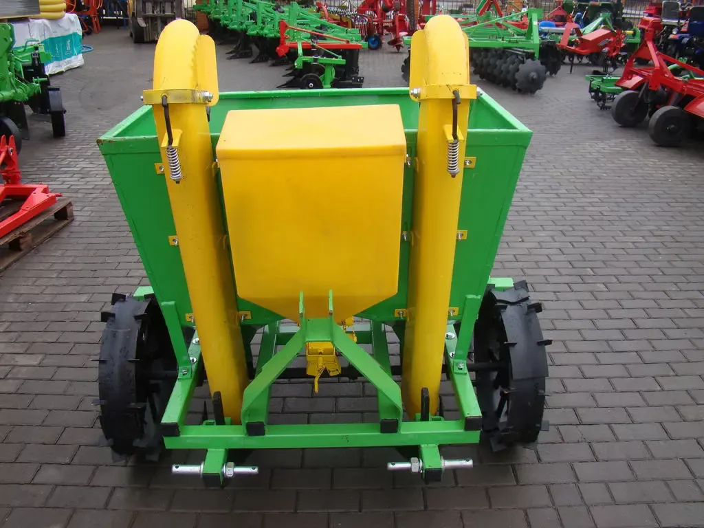 Двухрядная навесная сажалка для картофеля присоединяется к трактору при помощи заднего навесного устройства (ЗНУ). Сажалка взаимодействует с тракторами оснащёнными ЗНУ второй категории. Она выполняет все операции в одном рабочем цикле, связанным с высаживанием картофеля, т.е. вспахивает борозды, автоматически высаживает картофель и окучивает землю, формируя гряды.